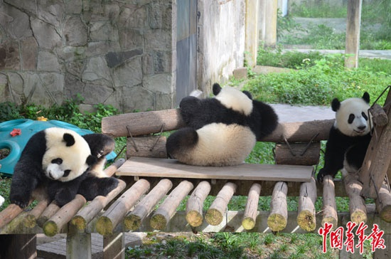 去年同一天在重庆动物园诞生的两对双胞胎“双双”“重重”和“喜喜”“庆庆”,是“新星”的曾孙辈。