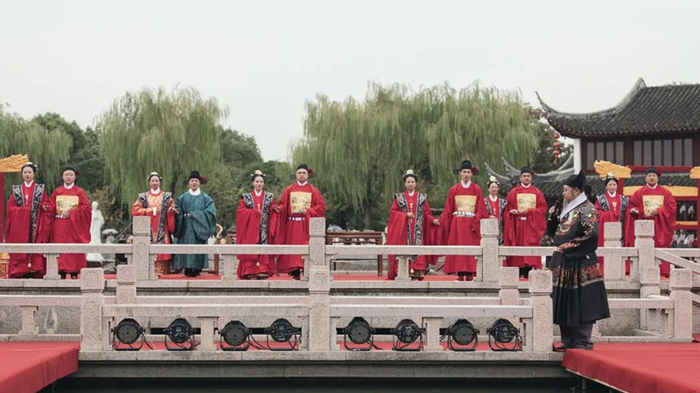 婚礼以明制传统婚礼为蓝本,在水上舞台盛大呈现,以星为媒,共结连理,通过拜堂、同牢合卺等环节,带领大家感受传统婚礼宏大的仪式感。