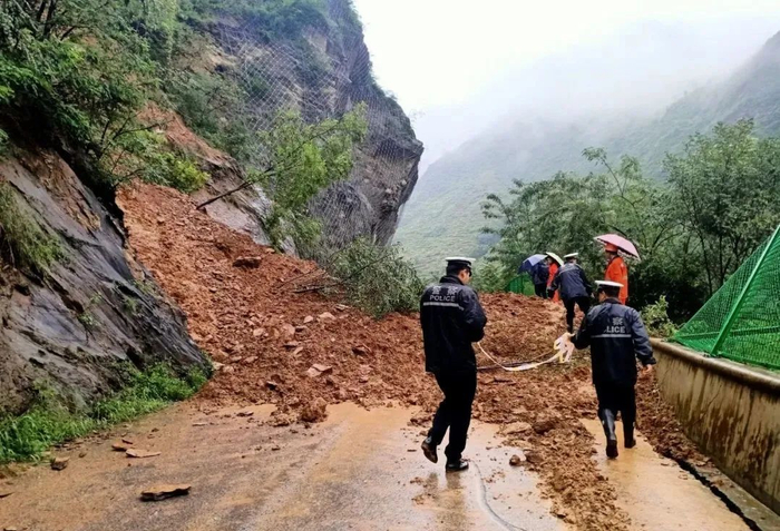 2、佛崖辖区:甘泉镇双沟村国道345线K2324+400m处山体泥石流滑坡,车辆无法通行,已交通管制。