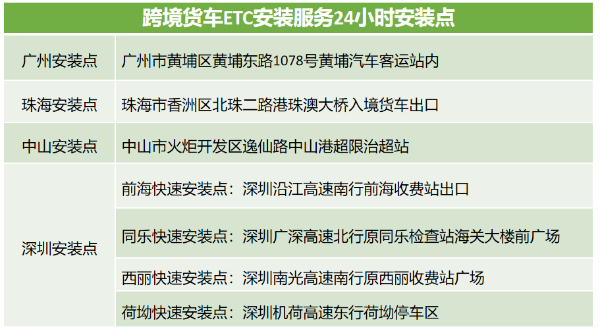 [广东]广东新设7站点,为香港跨境货车提供24小时ETC安装(图)