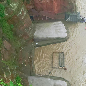 强降雨来临后,洪水漫过大佛脚趾