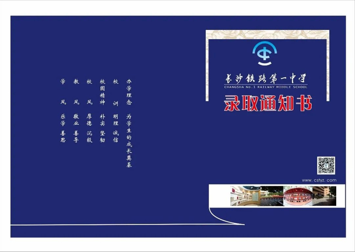 长铁一中录取通知书分高中、初中两个版本,画面设计采用简洁明了的设计风格,从视觉上感觉大气、美观。