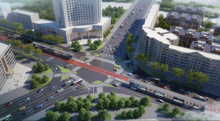 据了解,株洲市智能轨道交通系统项目采取普通公交和智轨融合方案,将建成世界独创、全国领先的快速交通体系,项目在宜宾方案的基础上,将普通公交融入智轨廊道,提高了廊道利用效率,减少普通公交与社会车辆的交织影响。
