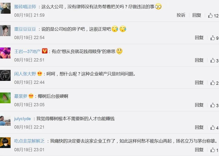 多数网友质疑,椰树集团这条招聘涉嫌违反劳动法,企业不应该以强制征用房产的形式招聘员工,“包身工”“卖身契”等字眼在评论区刷屏。