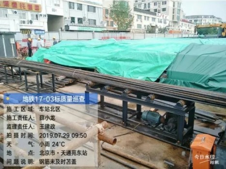 下图为“北京地铁17号线03标”项目,在建设智慧工地过程中,使用今日水印相机App拍摄的照片。