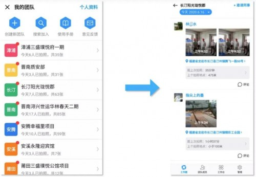 即可看到该项目成员实时拍的照片,和刷朋友圈一样方便。