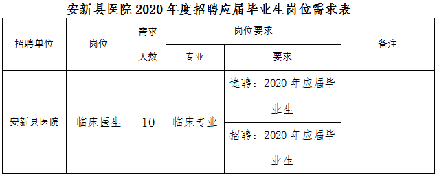4.检验岗位:普通全日制专科及以上学历,本科优先。医学检验,临床医学专业,1990年7月1日以后出生,仅限安新户籍人员。
