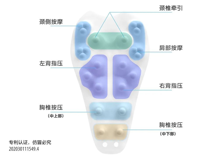 1、24个指压点完整覆盖颈、肩、背,睡前使用20分钟,释放颈椎疲劳。