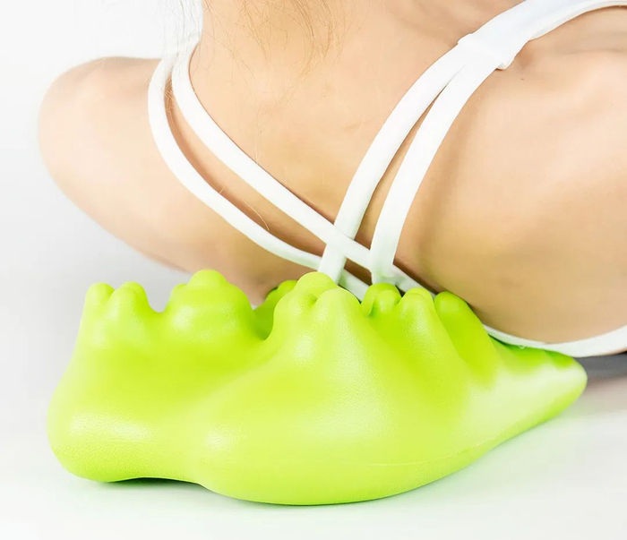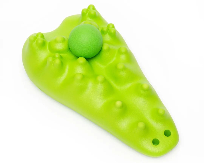 小鳄鱼身上有24个凹凸按摩点,肩、颈、背只要不舒服,在上面靠着滚动就可以按摩劳累了一天的颈椎,释放颈椎压力。
