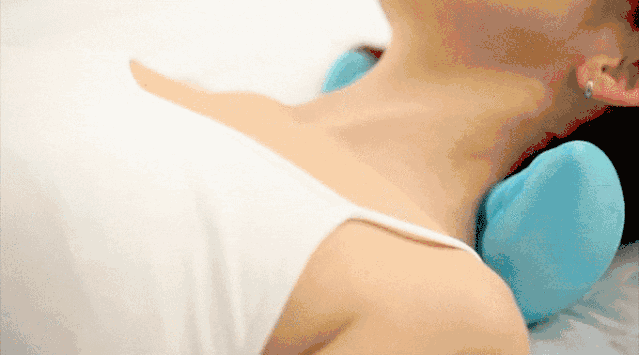 如果工作一天,脖子、后背略有酸痛,睡前就可以用小鳄鱼进行肩颈按摩,正常躺上去,按到你舒服为止。