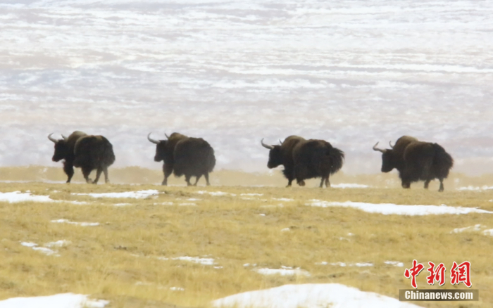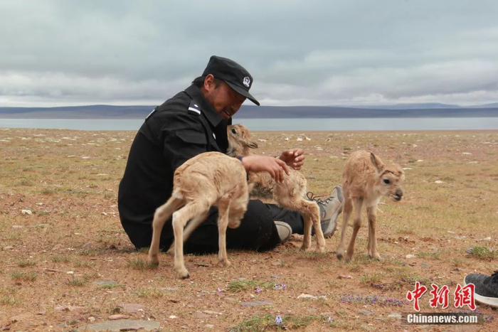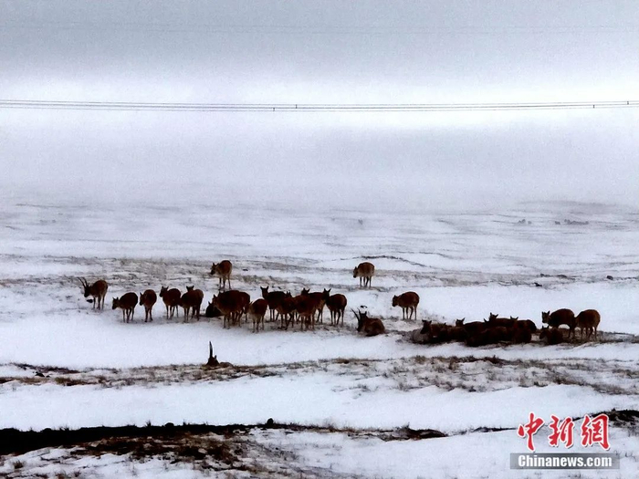 藏羚羊在迁徙过程中 可可西里管理处五道梁保护站工作人员采取临时交通管制措施保护迁徙顺利进行 尕玛英培 摄