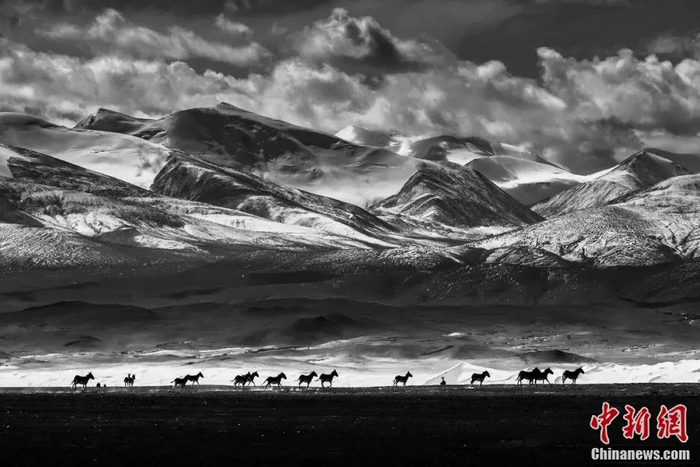 数百只以上的藏羚羊雪中觅食 赵新录 摄