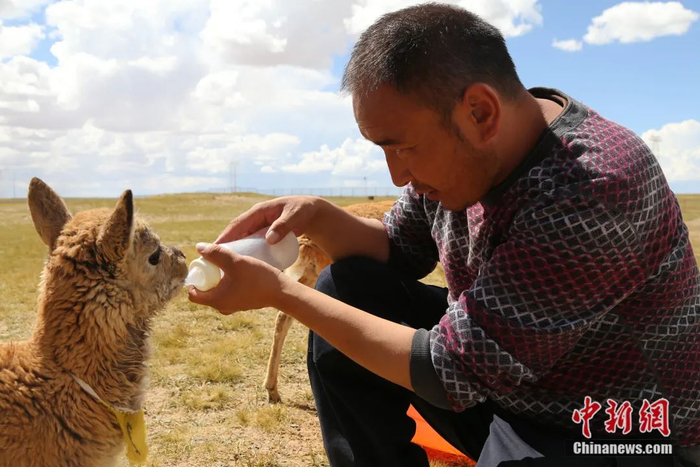 救护站的工作人员喂小藏羚羊 赵凛松 摄