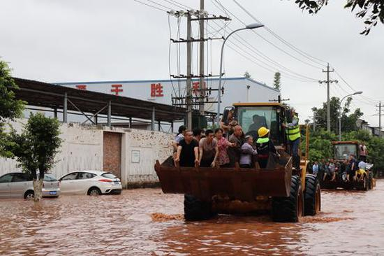 8月15日20时至16日14时,成都市天府新区籍田镇遭受持续强降雨,暴雨造成多处低洼地带内涝严重,涨水最深处超地面2米。16日15时,辖区内中交二航局雁栖湖项目,第一时间抽调未被困的2台装载机前往现场,全力进行抢险工作,历经4小时紧急救援,安全转移被困群众120余人。