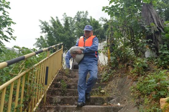 ▲2020年8月19日,洪水即将漫过唐家沱码头阀室,唐家沱码头油库负责人在趸船上长期坚守,带领油库员工搬运防洪沙袋阻挡洪水进入阀室,确保设施设备安全。