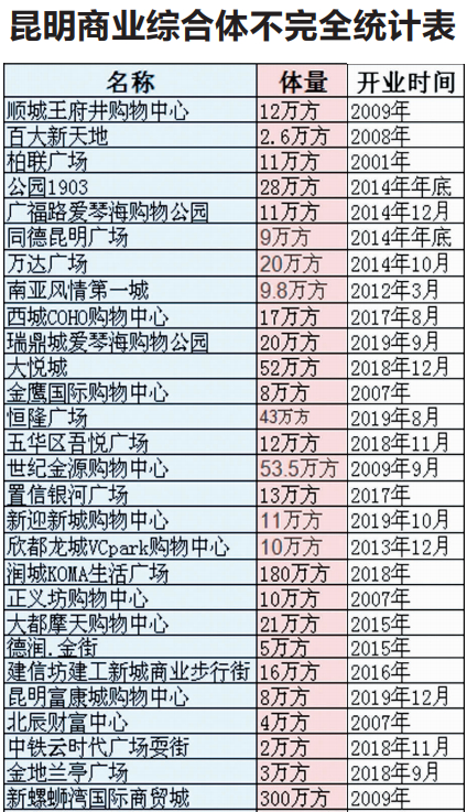 原标题:人均商业面积超香港?昆明商业综合体已超50个