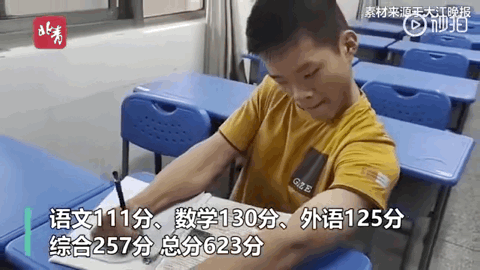今年高考,姚俊鹏考了623分,超理科一本线108分。由于身体原因,姚俊鹏的父母为其申请延长了考试时长,每科都多了30%的时间。高考时,姚俊鹏第一次在考试中写完了语文作文,考了111分。