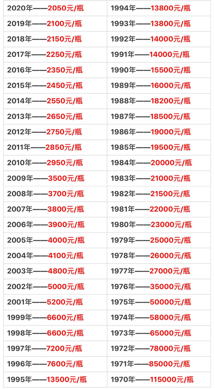 1953到1969年茅台10万-260万/瓶。
