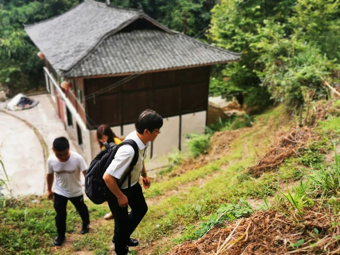 陈立群在台江县台盘乡南庄村家访途中(2019年4月16日摄)。新华社记者 杨文斌 摄