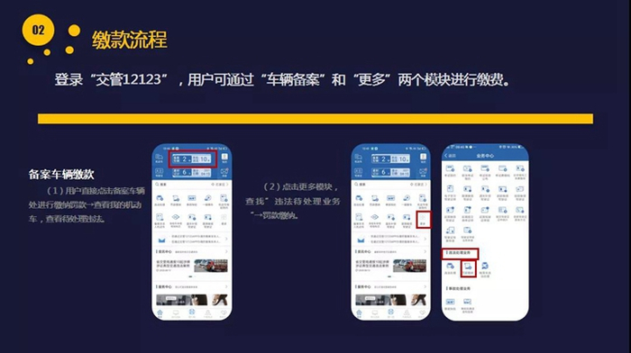 通过“交管12123”APP微信缴纳罚款无需再往返银行,全程线上操作。第一步,登陆“交管12123”APP;第二步,点击备案车辆信息,选择待处理违法的车牌号;第三步,在违法处理页面选择微信支付渠道,最后支付罚款。群众在使用中遇到疑难问题,可拨打12123交管服务热线咨询。