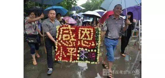 2014年8月22日,广安市群众抬着摆出“感恩小平”字样的花牌,到协兴镇小平故里纪念邓小平诞辰110周年。