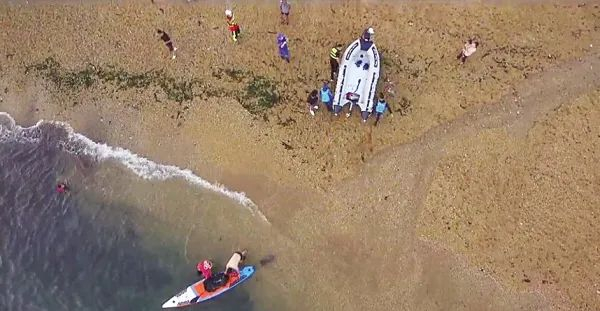 “经我们了解,被困的是一对情侣,他们俩是从傅家庄浴场下水,在海上玩桨板冲浪,一路向深海区行进。”王宇冬说,这对情侣最终一路冲到了东大连岛附近,此时距离海岸线已经有八百多米远,两人体力耗尽,只好向朋友求救。“尤其危险的是:此时海上海流汹涌,两人单靠体力已经不可能返回了。”王宇冬说,中山蓝天救援队立即出动无人机展开空中侦察搜索,同时多名队员乘坐冲锋艇下海,奔赴东大连岛海域救援。