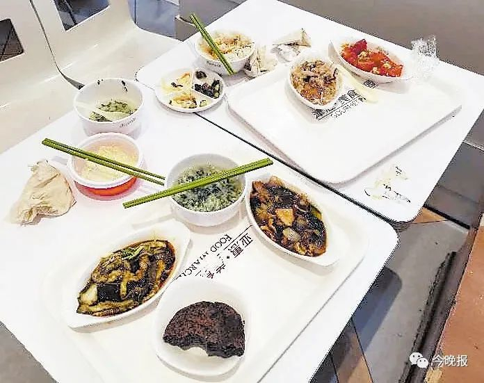 之后,记者来到旁边的大食代美食广场,这里有多个美食档口。在一个餐桌上,两个女孩买了两份套餐,就剩了多半,汤类几乎未动,小菜也没怎么吃。一位正在收拾餐具的服务员说,食客浪费的情况不少,有的一份饭剩了大半就不要了,每天他们都会处理很多这样的厨余。