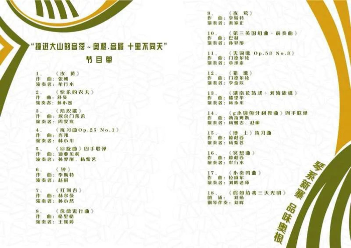 奥根琴房继“刘晖钢琴教室”发展而来。集培养学生扎实全面的音乐素质和钢琴演奏基本功、塑造具有高端审美意识、锻炼大小脑于智商、情商、逆商、灵商的修炼,并兼具自律、独立、宽容、善于合作等优秀品质于一体的“艺术品”打造场所。这一次,奥根琴房带着对大山深处民族音乐的求知若渴,还有一群优秀的小小演奏家走出城市,走进深山,流连新寨咖啡庄园。