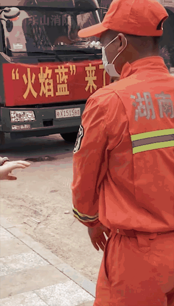 旁边有人问她为什么要给消防员送水