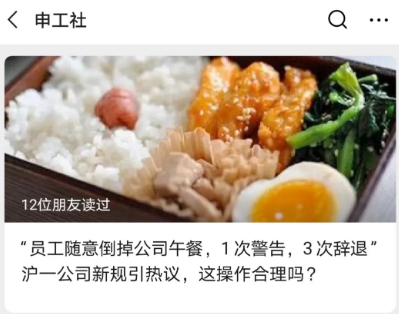 原标题:员工浪费午餐3次,就辞退!一公司的规定让网友炸锅