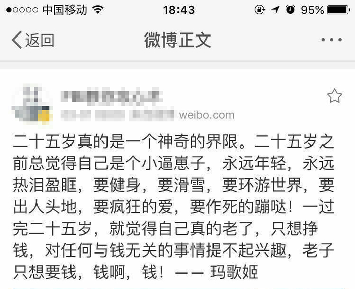 这位同学说看了下面的话很有感触,现在25岁,一心只想赚钱。