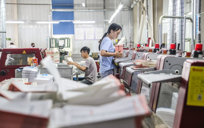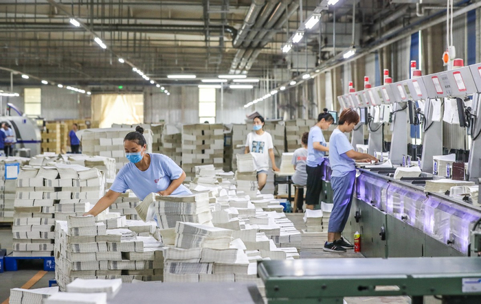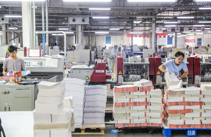 盛夏,在河北肃宁经济开发区的鹏润印刷公司的生产车间仍是一派忙碌的生产画面。飘浮着淡淡的墨香,一条长长的胶订龙盘卧在车间里,操作台上印刷好的纸张整齐码放,在设备的另一端,一本本装订成册的新版党政读本款款走下生产线。鹏润公司是一家以畅销图书和教材教辅印刷装订为主的印刷企业,从北京疏解至河北后,迎来二次腾飞,年产值增长1亿元。
