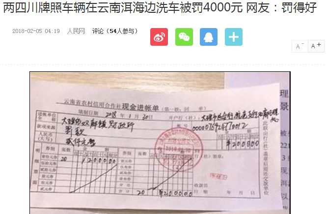 原标题:又有“游客在洱海边洗车”,罚款2000元!
