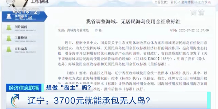 为了改善这种情况,辽宁这才发出相关通知。那是不是真如网友所说,只要花上3700元就能当岛主呢?