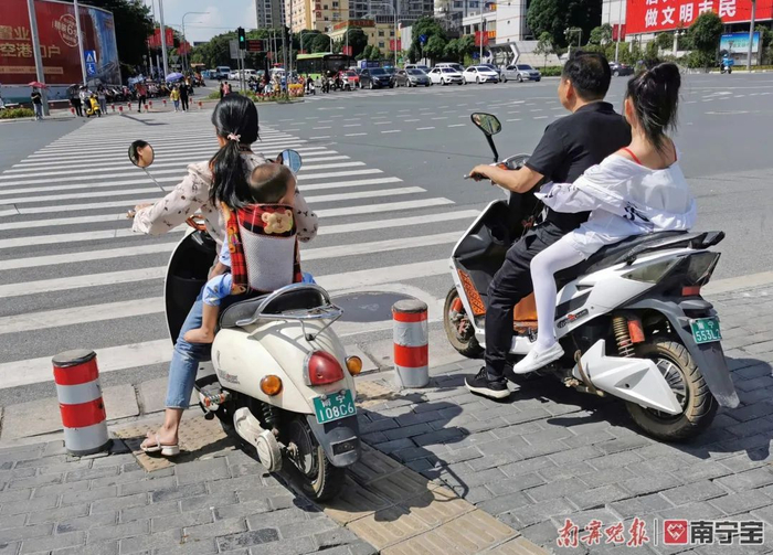 在南宁,类似的案例也屡见不鲜。8月12日晚10时20分,在南宁民族大道七岔路口,一辆电动自行车闯红灯撞上一辆正常行驶的小轿车,在强烈的撞击下,电动自行车上的男骑手和女乘客被抛落在小轿车车顶上,两人不同程度受伤,所幸没有生命危险。