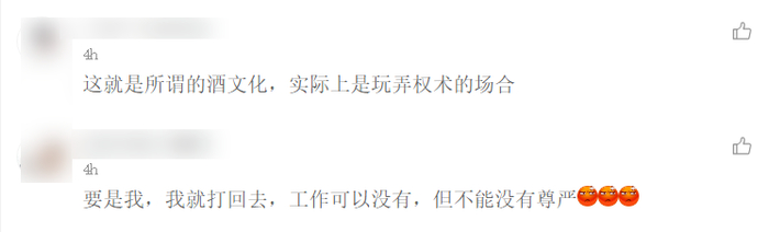 杨某表示:“这次事件对于新入职场的他来说,覆灭了对金融行业的一切美好想象。我想如实告知大家这个情况,希望大家合理看待这个问题,多听取多方意见,不要听信一-面之词。我也想请问群里的HR老师,我不喝酒是否不符合公司要求?我遭遇的经历,是否超越了我的职责范围应该承受的压力?我暂时保留一切我应有的权利。”