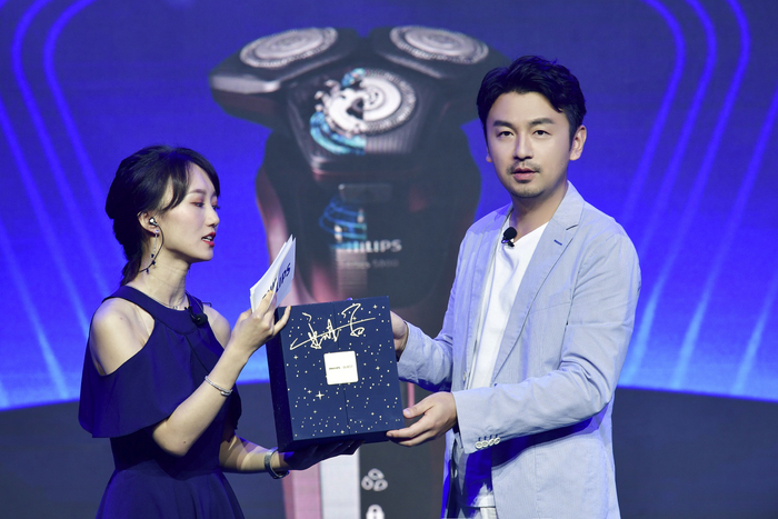 在新品发布会当晚的直播中,飞利浦男士理容挚友雷佳音惊喜亮相,与飞利浦大中华区健康生活事业群销售副总裁程凝先生、飞利浦大中华区健康生活事业群男士理容事业部高级总监王妍女士,共同揭幕飞利浦肌能感应系列电须刀小黑盒,开启男士理容的全新纪元。