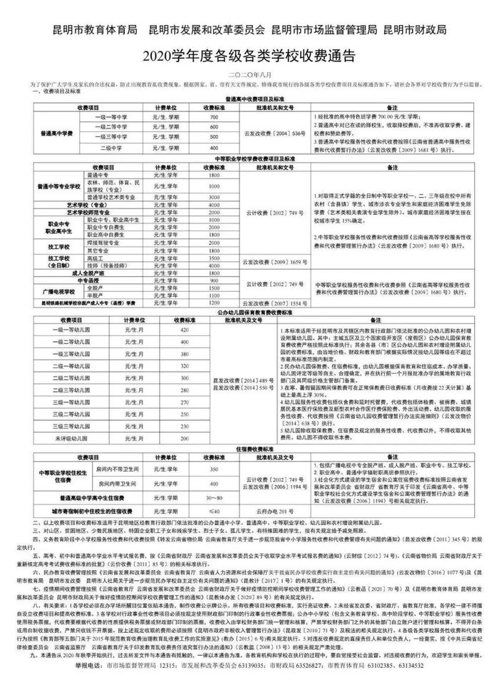 一级一等高中学费每学期700元!昆明发布各级各类学校收费通告