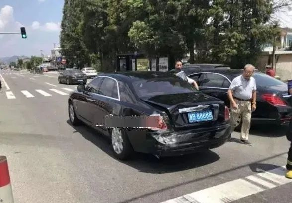 8月21日,有网友爆料,浙江宁波一辆劳斯莱斯在路口等红灯时被消防车追尾,该劳斯莱斯车牌号88888。