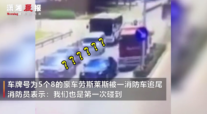 消防车追尾车牌号88888的劳斯莱斯,消防员:第一次碰到这种情况