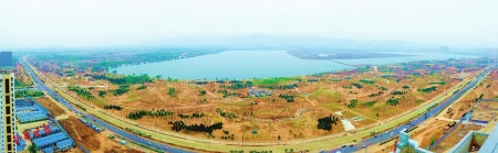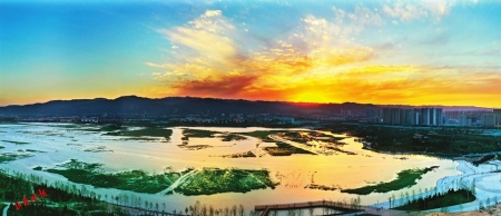 1.从晋阳湖西岸的映月艺廊俯瞰晋阳湖。