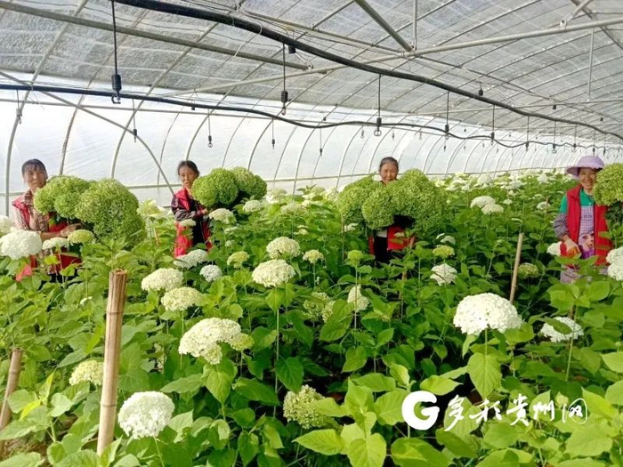 他们试验了五万多株耐寒性好的安拉贝娜绣球花,目前正迎来了采收阶段、全部被澳洲的客户所预定。“安拉贝娜绣球可以露天种植,公司打算向村民们推广种苗和技术。”
