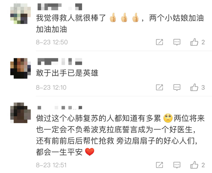 网友纷纷安慰两位救人的小姐姐: