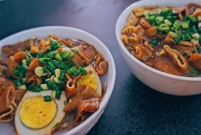 将米粉浆做成小三角形,然后放入沸水里面煮,再加上各种配料和卤汁,这样做出来的粿汁,既有米的香味,也有配料的香味。