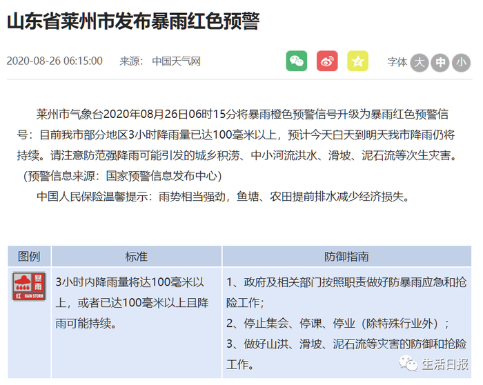 莱 芜 区 多云转阴,夜间有阵雨 东北风3~4级 最高气温26℃