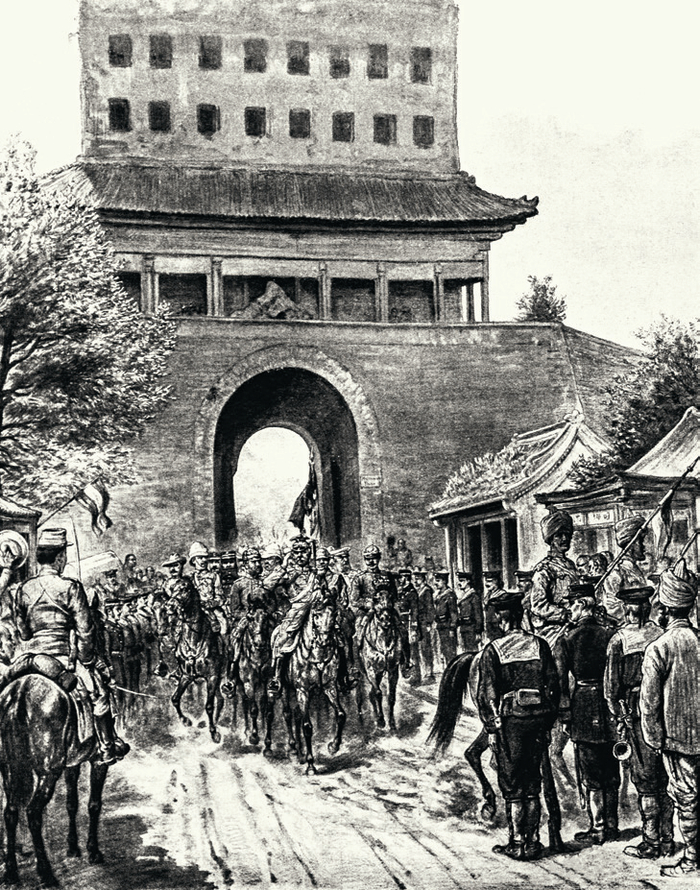 10月17日,瓦德西元帅在联军众位将军的陪同下,经由哈德门进入北京城。