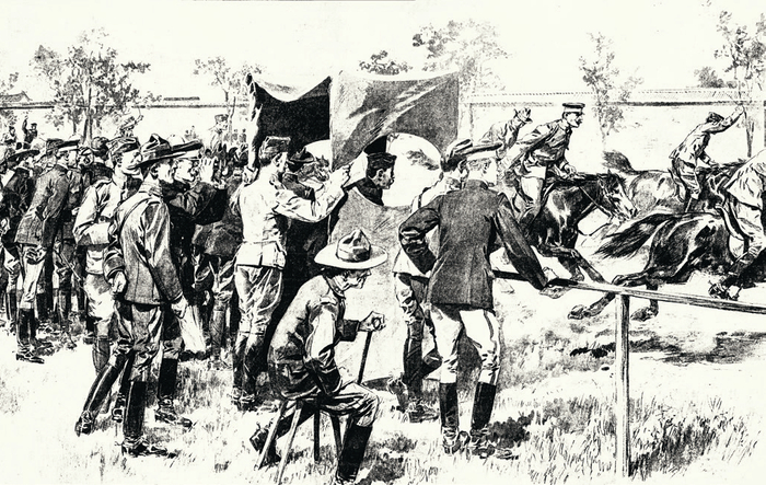 北京天坛内的运动会。弗雷德里克·德·海因根据一张照片绘制。