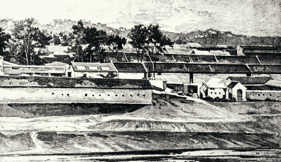 北京英国公使馆内用于制造子弹的铅堆与烛台。中国香港美璋照相馆提供。