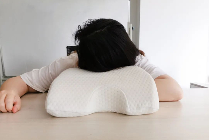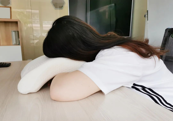 枕着胳膊,或者直接倒头睡在桌面上,会因为支撑力不足,肩、颈、背部负荷较重。
