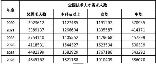 随着国家有计划地对传统企业进行数控化、信息化和智能化改造,高端数控机床、工业机器人、增材制造等智能制造装备将会普及应用,需要大量操作、调试、维护、维修和改造方面的专业人才。根据调研显示,智能制造装备集成和应用技术技能人才需求总数按照本科、高职和中职培养需求分解,具体如下表: